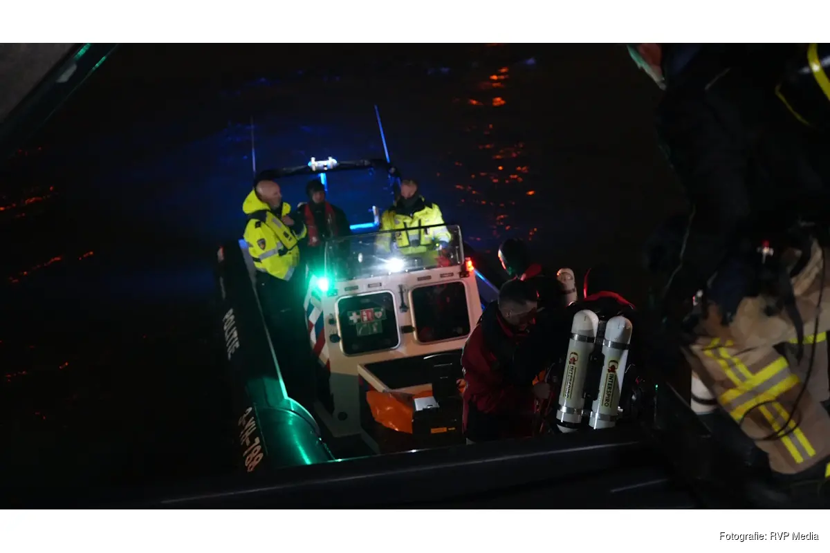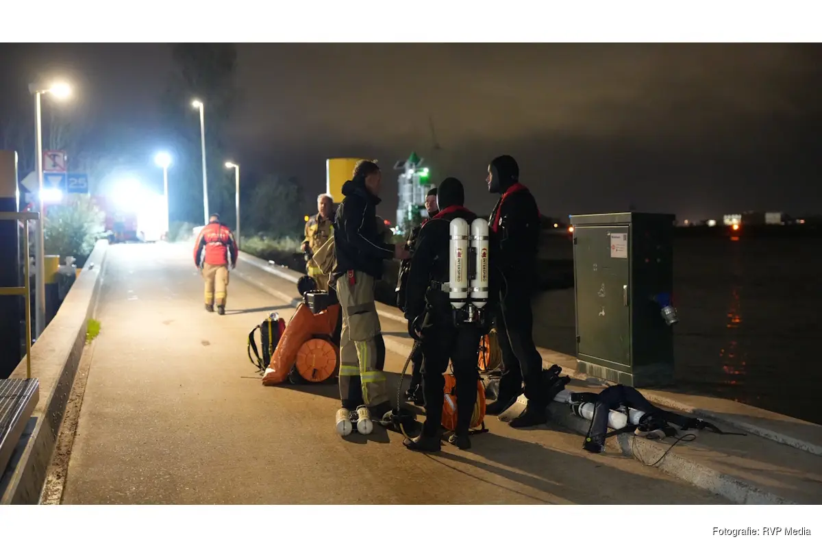 Meerdere duikers zijn in het water aan het zoeken, terwijl boten met sonarapparatuur de omgeving afspeuren. Ook vliegt er een politiehelikopter boven de haven.