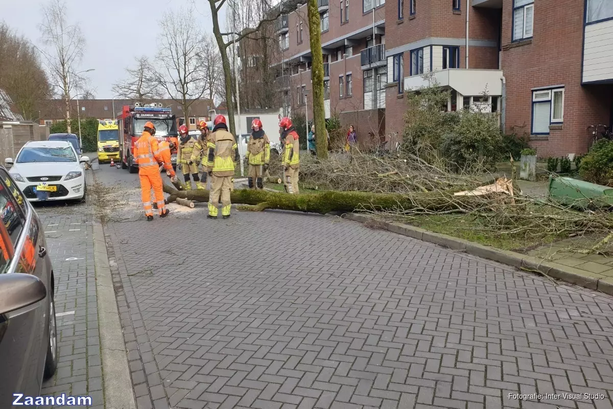 NOORD-HOLLAND - Hulpdiensten hebben hun handen vol aan de storm Eunice die sinds vanmiddag over Nederland raast. Met name in Noord-Holland kwamen er vele meldingen met betrekking tot ongelukken, losgerukte bomen, rondvliegende takken, en schade aan daken.