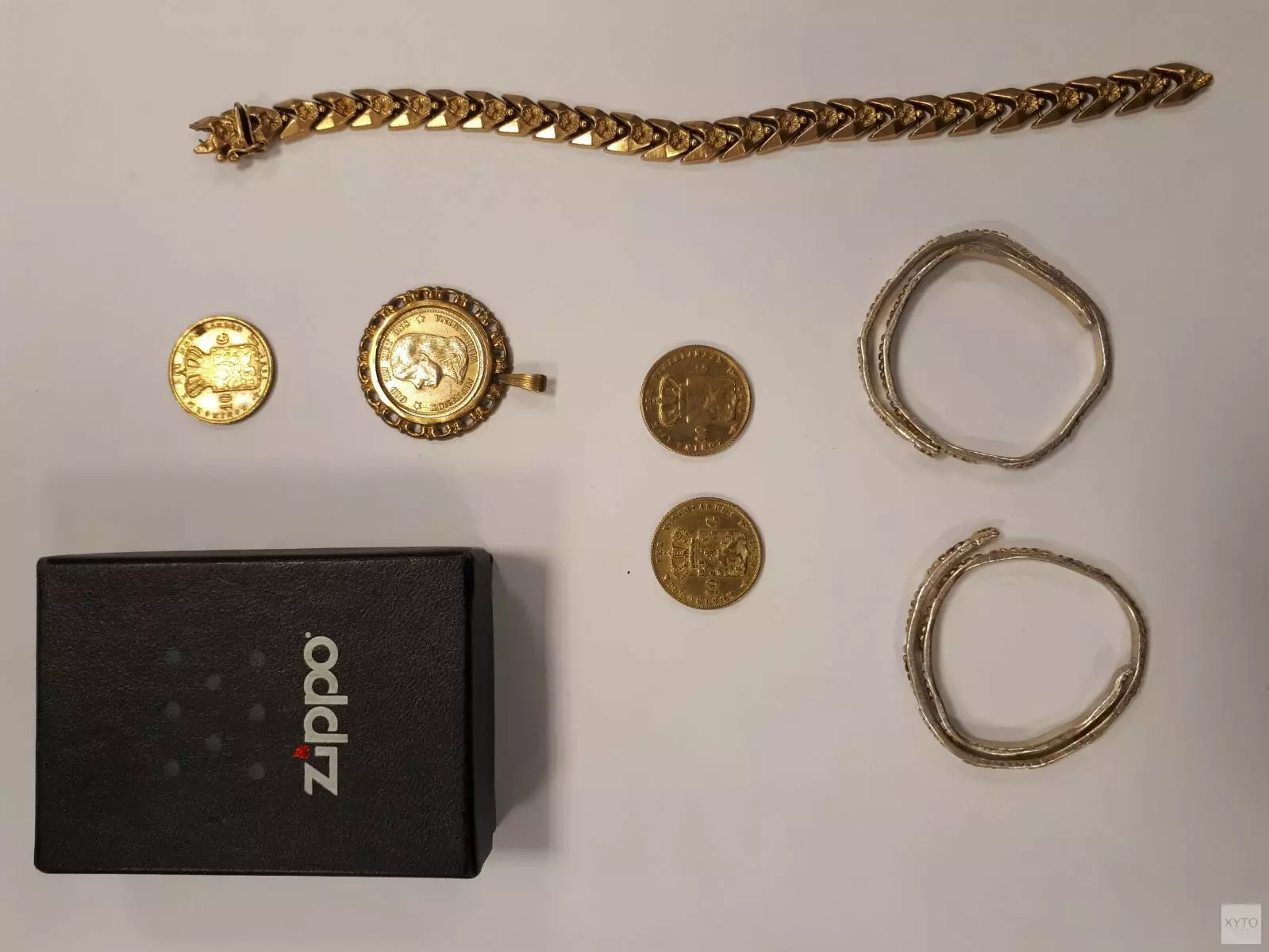 De recherche arresteert de cv-monteur en treft in zijn woning diverse gestolen sieraden aan. Die neemt de politie in beslag. Ook bij een van de goudinkopers die de verdachte bezocht, treft de politie nog een aantal gestolen sieraden aan en neemt ook die in beslag. Het gaat vooral om gouden sieraden zoals ringen, kettingen en hangertjes. In één van de ringen is ook goed een inscriptie zichtbaar. Hier staat Evert 12-6-76 22-12-77.