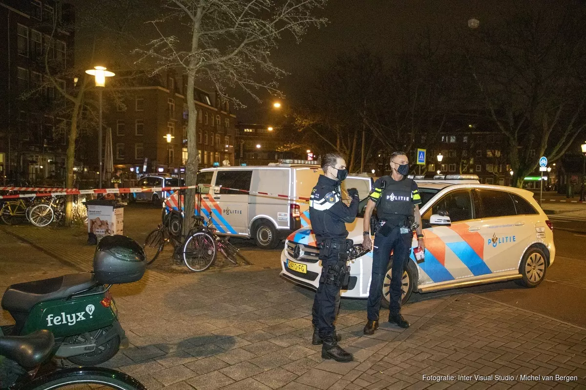 De 21-jarige man werd neergeschoten op de stoep, tegenover het Krugerplein. Hij is zwaargewond naar het ziekenhuis overgebracht. Even later kon de politie twee verdachten aanhouden op last van de schietpartij.