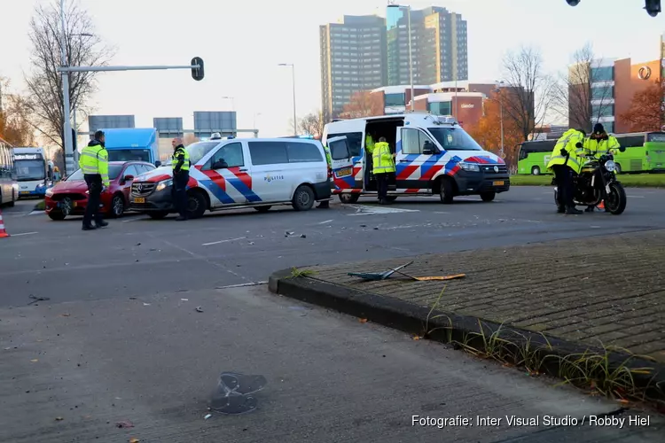 AMSTERDAM - Vrijdagmiddag rond 15.45 uur is op de Basisweg in Amsterdam een motorrijder in botsing gekomen met een auto.