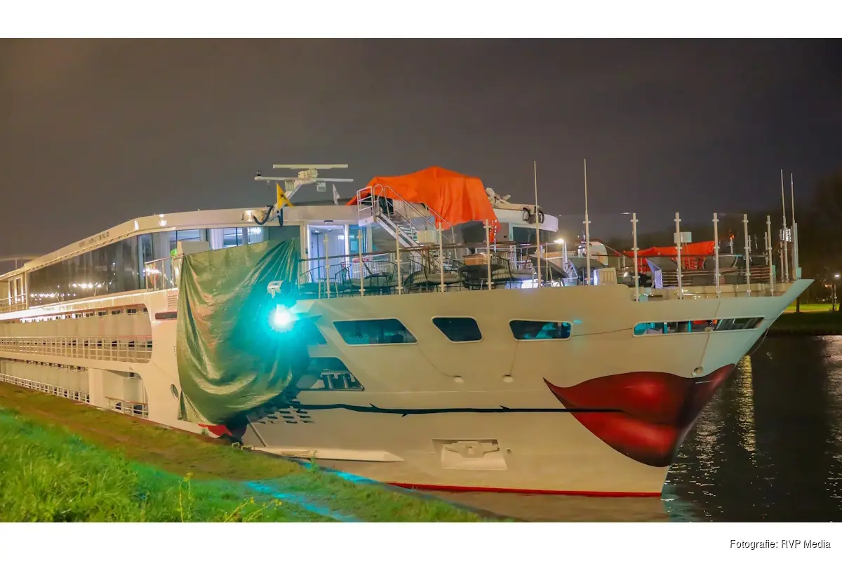AMSTERDAM – In de nacht van woensdag op donderdag is het Zwitserse riviercruiseschip A-Rosa Sena tegen de Amsterdamsebrug gevaren.