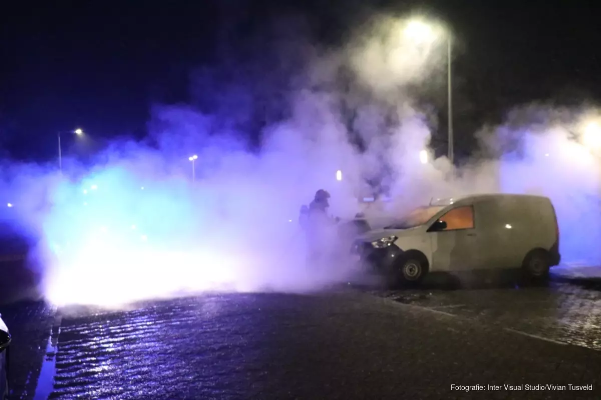 De brandweer kon niet voorkomen dat de brand oversloeg naar een naast geparkeerde auto. Vermoedelijk is de brand aangestoken.