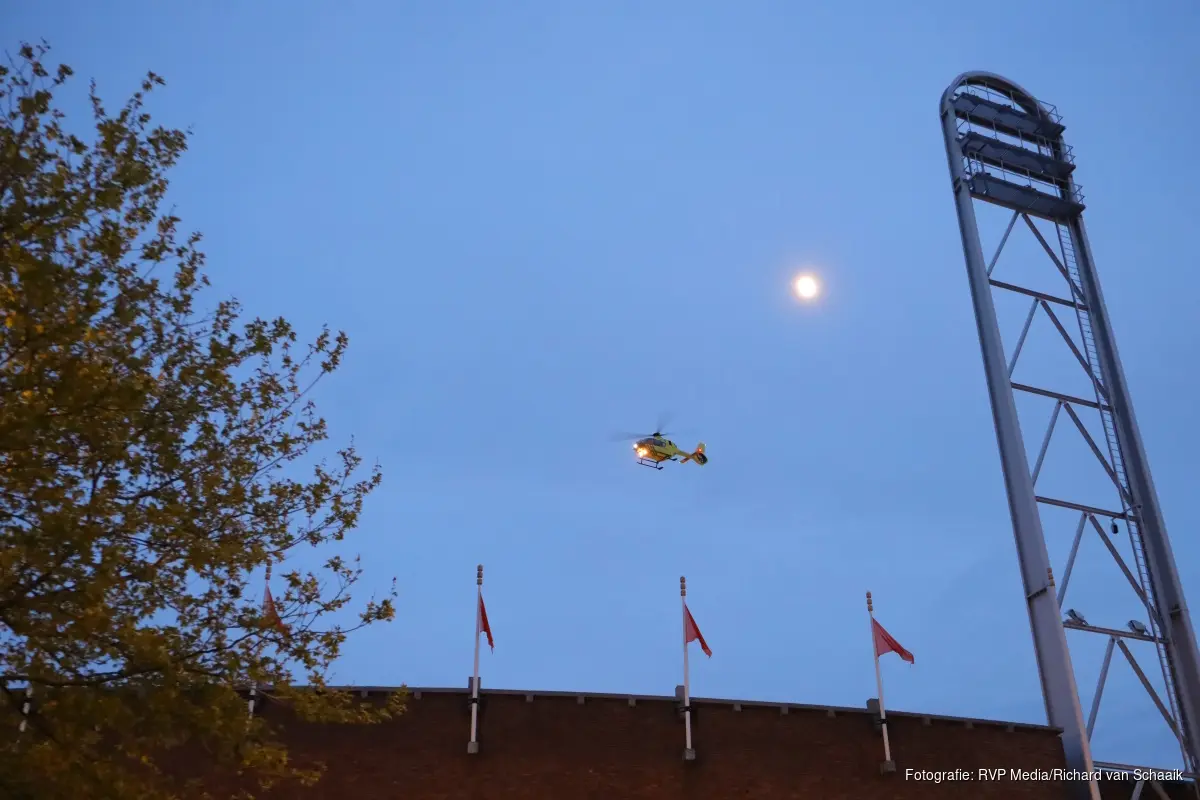 De hulpdiensten rukten rond 20.50 uur massaal uit. Meerdere ambulances en een mobiel medisch team kwamen ter plaatse, waarbij het traumateam per helikopter arriveerde en in het stadion landde.