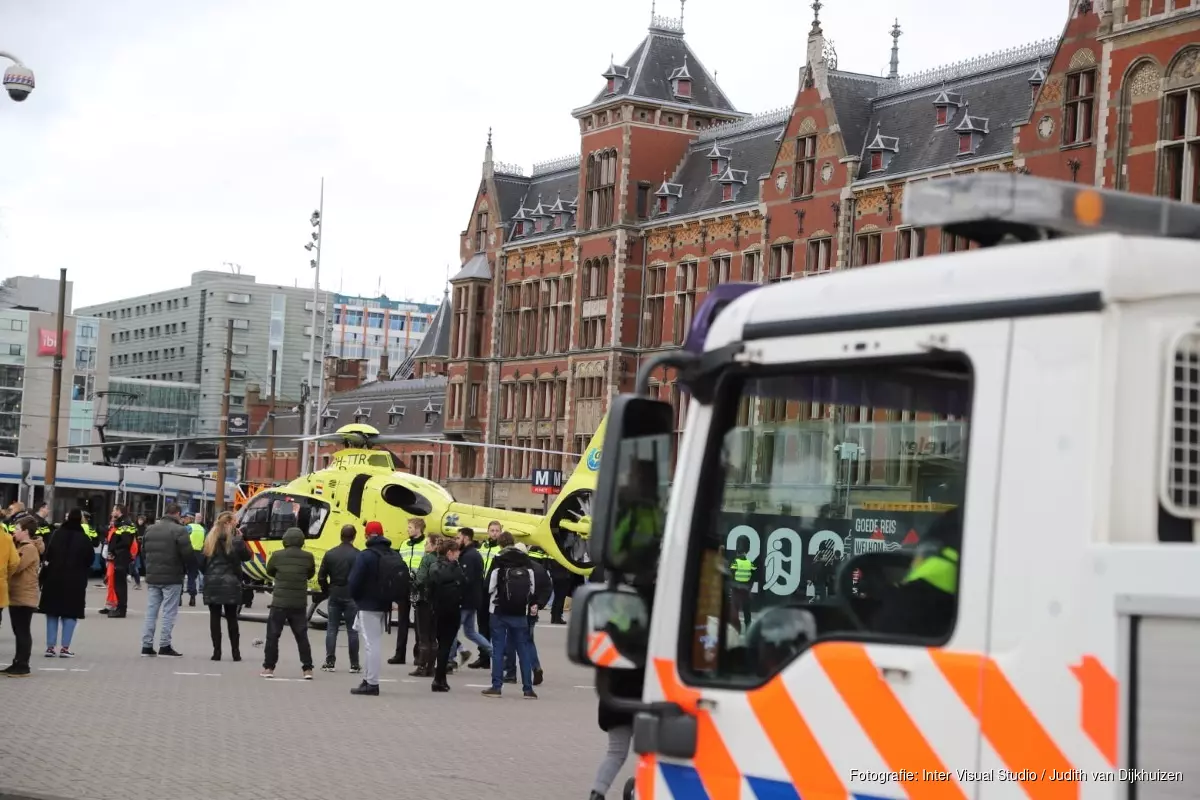 De hulpdiensten werden rond 15.15 uur naar de Koestraat opgeroepen. Een traumahelikopter landde op het Stationsplein, pal naast Amsterdam Centraal.