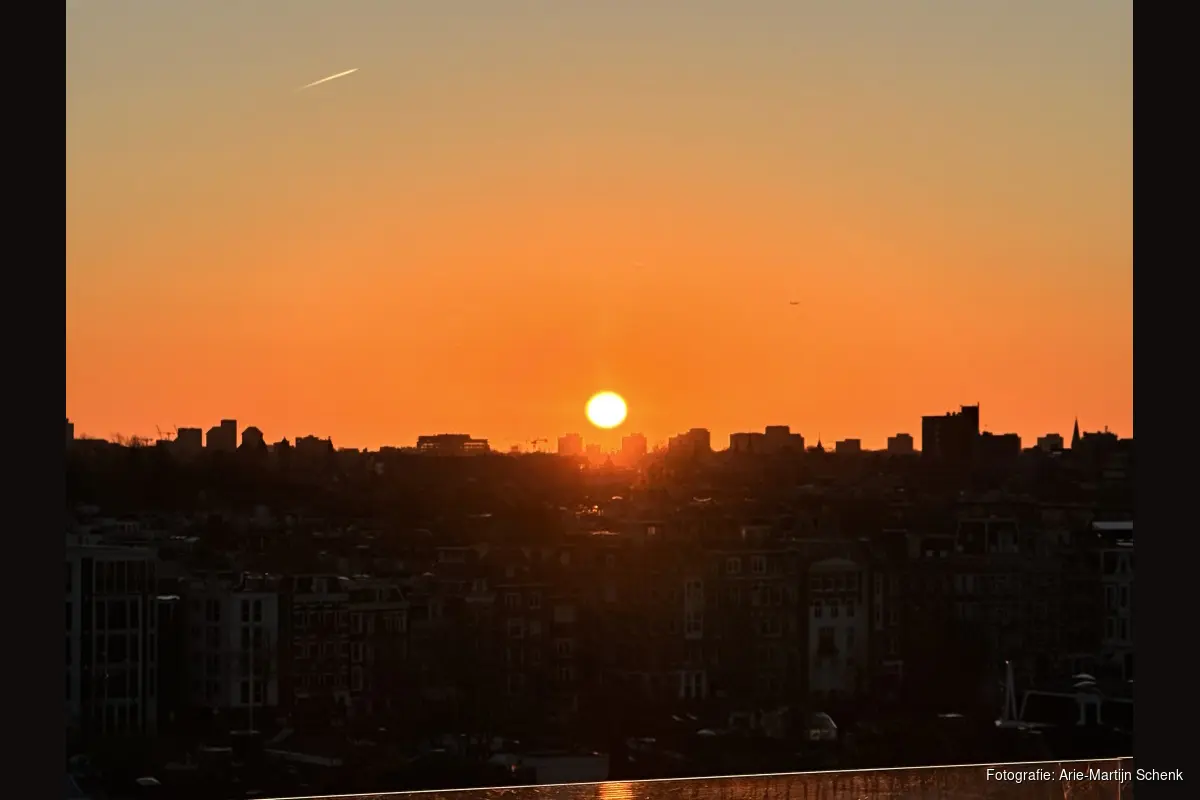 Tussen de gangen door blijft het uitzicht trekken. De Amstel kleurt langzaam donkerder, terwijl in Oost de eerste lichten aangaan. De sfeer op het terras verandert subtiel, zonder haast.