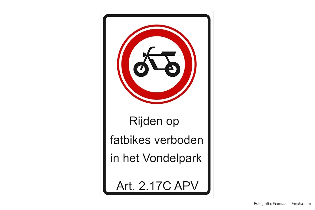 AMSTERDAM - Het Vondelpark wordt het eerste gebied in Amsterdam waar niet meer op een fatbike mag worden gereden. Het fatbikeverbod gaat op 11 mei in. In de eerste twee weken worden fatbikebestuurders gewaarschuwd. Daarna wordt er gehandhaafd en riskeren ze een boete.