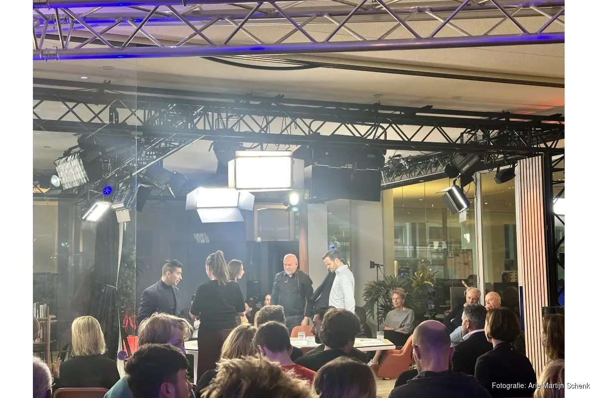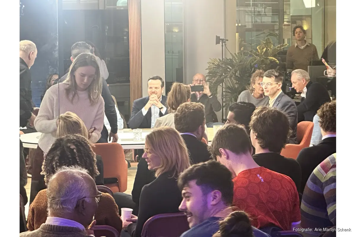 Debatleider Nicolai Brannan opende de avond met een duidelijke opzet: vier thema's, vier tafels. De komende weken strijden twaalf lijsttrekkers om de 45 zetels in de Amsterdamse gemeenteraad. Het debat startte bij de economie.