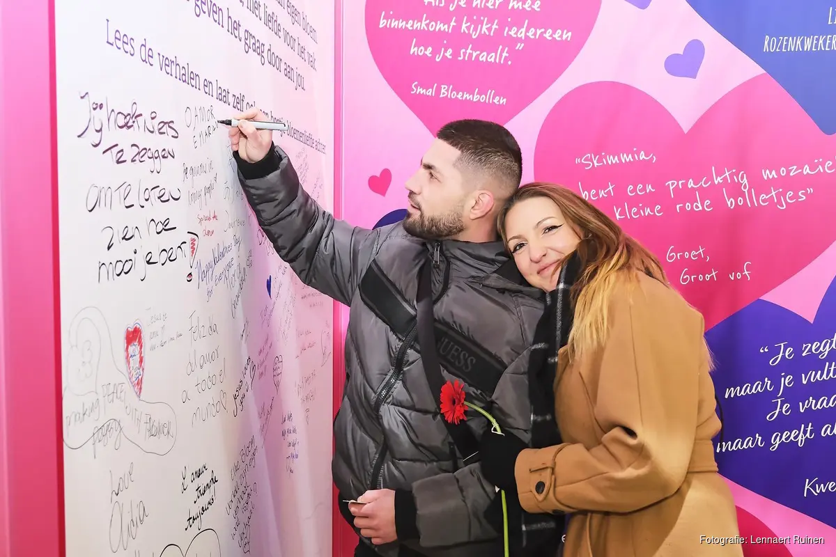 Reizigers werden uitgenodigd om hun boodschap aan de bloem op de gigantische Valentijnskaart te schrijven. Terwijl ze hun persoonlijke boodschap toevoegden, konden ze genieten van gratis bloemen die ter plaatse door de kwekers werden uitgedeeld. Dit was een hartverwarmend moment van verbinding tussen kwekers, reizigers en consumenten, waarbij de passie voor bloemen in het hart van Amsterdam werd gevierd.Met Bloemenliefde laat Royal FloraHolland zien dat achter elke bloem een verhaal schuilt. Een verhaal van toewijding, zorg en liefde dat elke dag opnieuw begint bij de kweker.