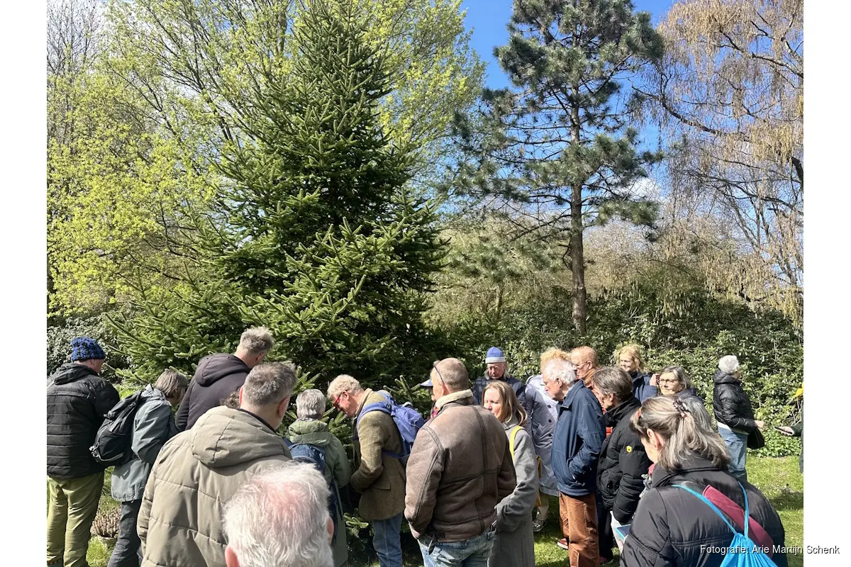 Na een uitgebreide ronde door het arboretum komt de groep weer samen bij het beginpunt. Twee uur lang draaide de wandeling om bloei, bestuiving en verspreiding. Op deze eerste paasdag laat het voorjaar zich van dichtbij zien, met een grote variatie aan vormen en strategieën die zich in het arboretum ontvouwen.