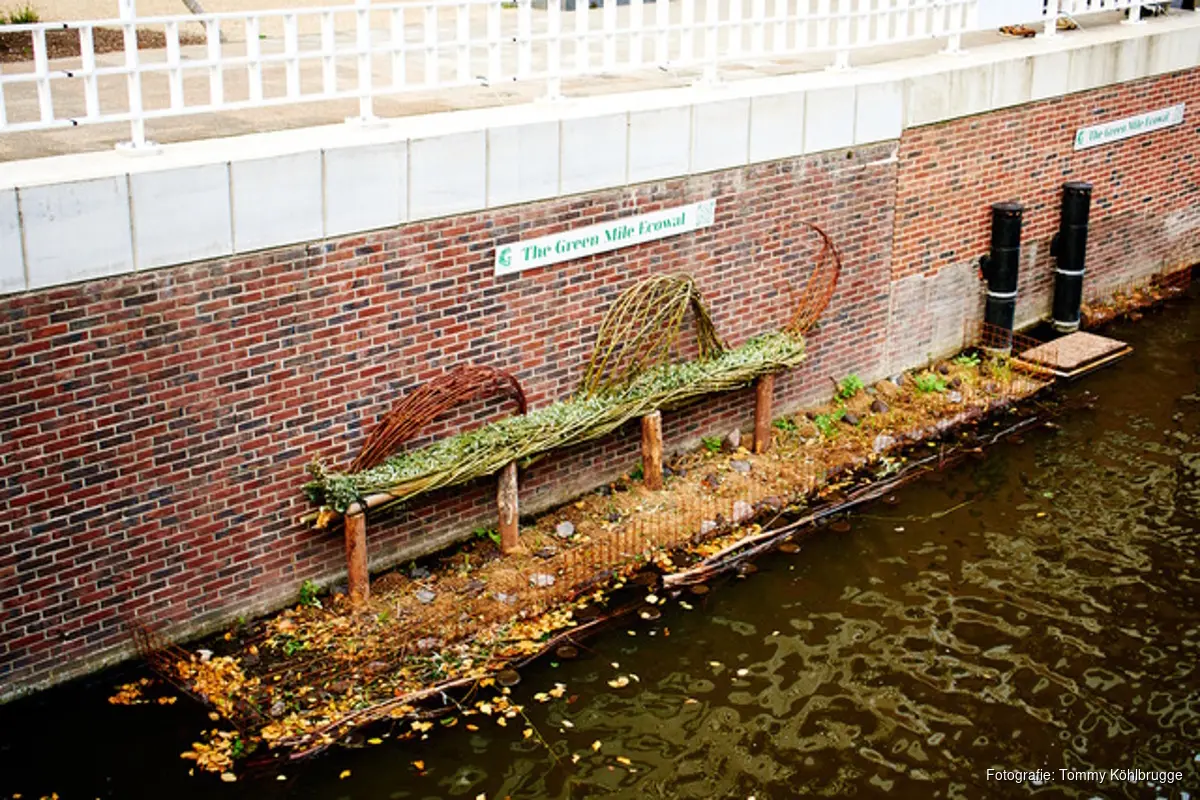 Boven water vergroenen en kleuren inheemse planten de kademuren, zuiveren zij het water en trekken zij insecten aan. De wortels hechten zich in kokosmatten en wol van Drentse heideschapen, geplaatst op de stenen constructie.