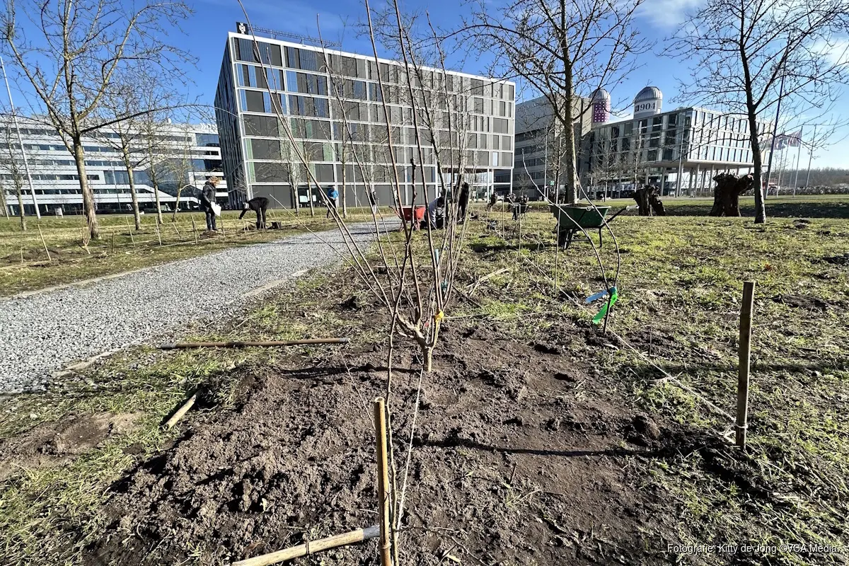 De eerste plantdag verliep fris maar zonnig. Nog niet alle struiken staan in de grond. Komende dinsdagochtend volgt een nieuwe sessie waarvoor vrijwilligers zich nog kunnen aanmelden via erehaag750@gmail.com.