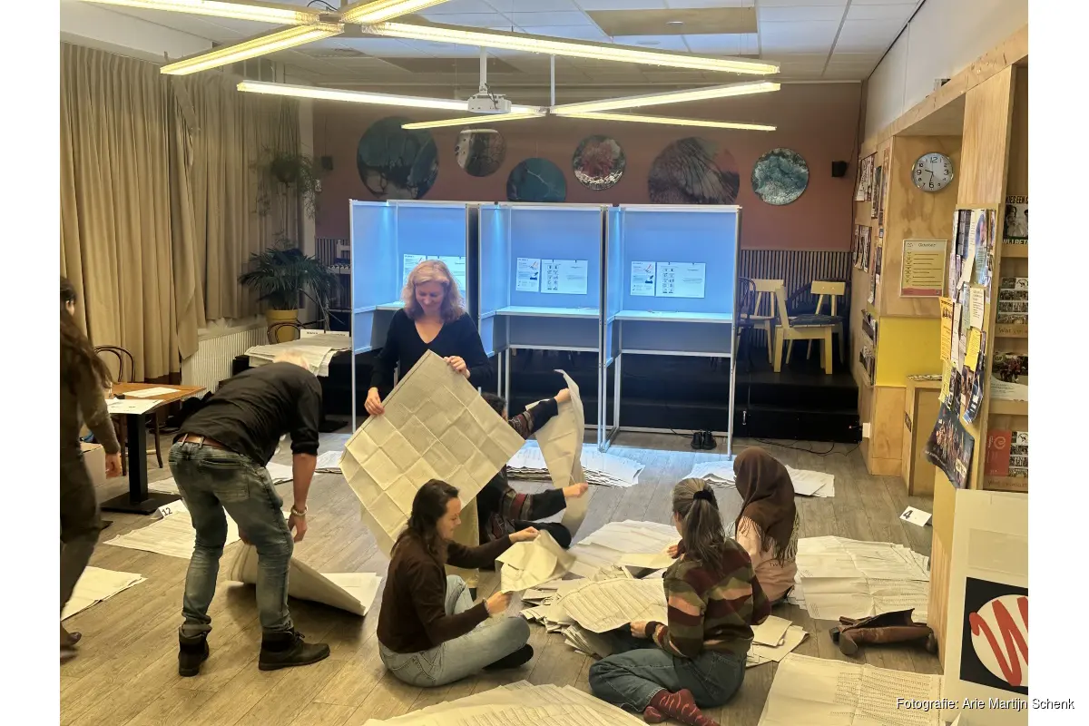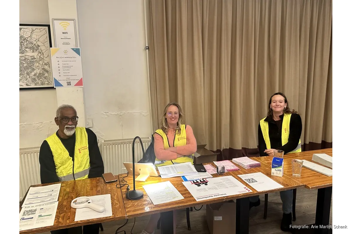 Tussen de vaste gezichten zitten ook nieuwelingen. Gerard, die sinds een paar jaar op het Cruquius-eiland woont, helpt voor het eerst mee. 'Het leek me interessant om dit een keer mee te maken', vertelt hij terwijl hij een stapel nieuwe stembiljetten neerlegt. Claire, die al vaker op verschillende locaties hielp, knikt herkenbaar. 'Mijn moeder deed dit ook al, ik doe het nu in haar voetsporen. Het blijft leuk.'