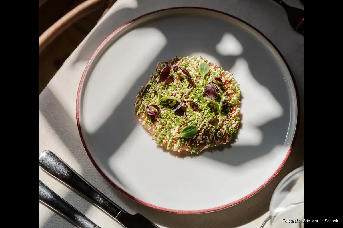 Afgelopen najaar werkte de keuken samen met NoordOogst. Producten kwamen uit circulaire en duurzame teelt. Die samenwerking sluit aan bij de manier waarop het Markerhuisje de kaart samenstelt.