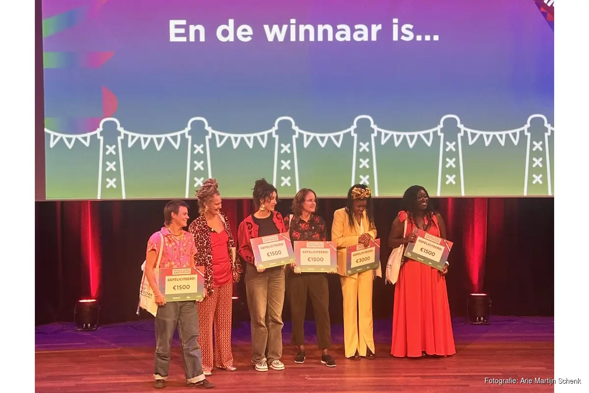 Tussendoor dansten de leden van United Dance Culture de zaal plat. Ook kwamen de winnaars van 2024, Edna en Sharida van de Dreamsisters uit Noord, vertellen wat zij bereikten. Hun advies: 'Ga niet naast je schoenen lopen. Blijf jezelf. Wat is nou 3000 euro? Eten en muziek verbindt! Doe lekker gek.'