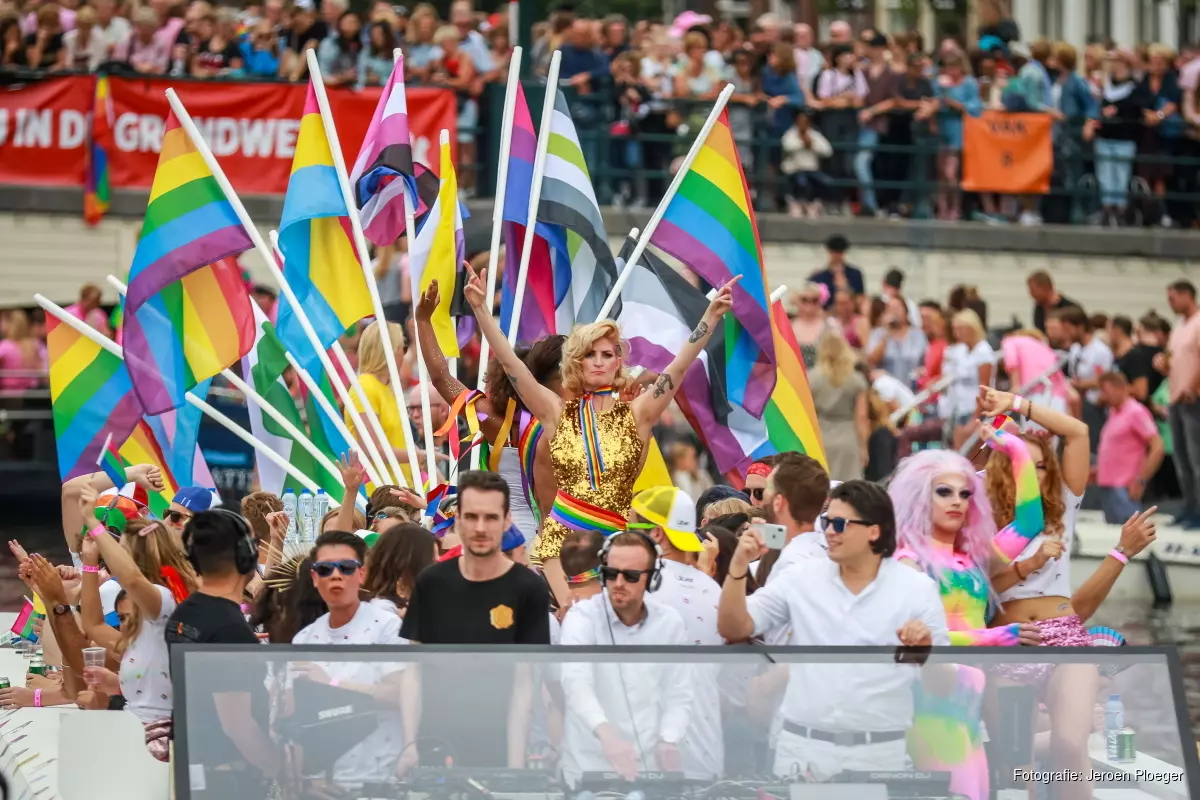 AMSTERDAM - Provincies Noord-Holland, Gelderland en Limburg varen voor het eerst mee met een provincieboot tijdens de Canal Parade van Pride Amsterdam 2022.