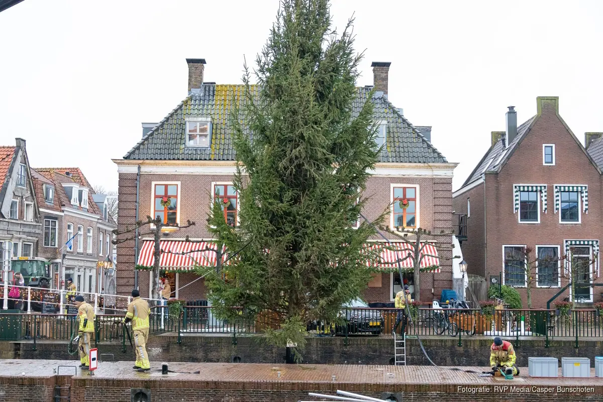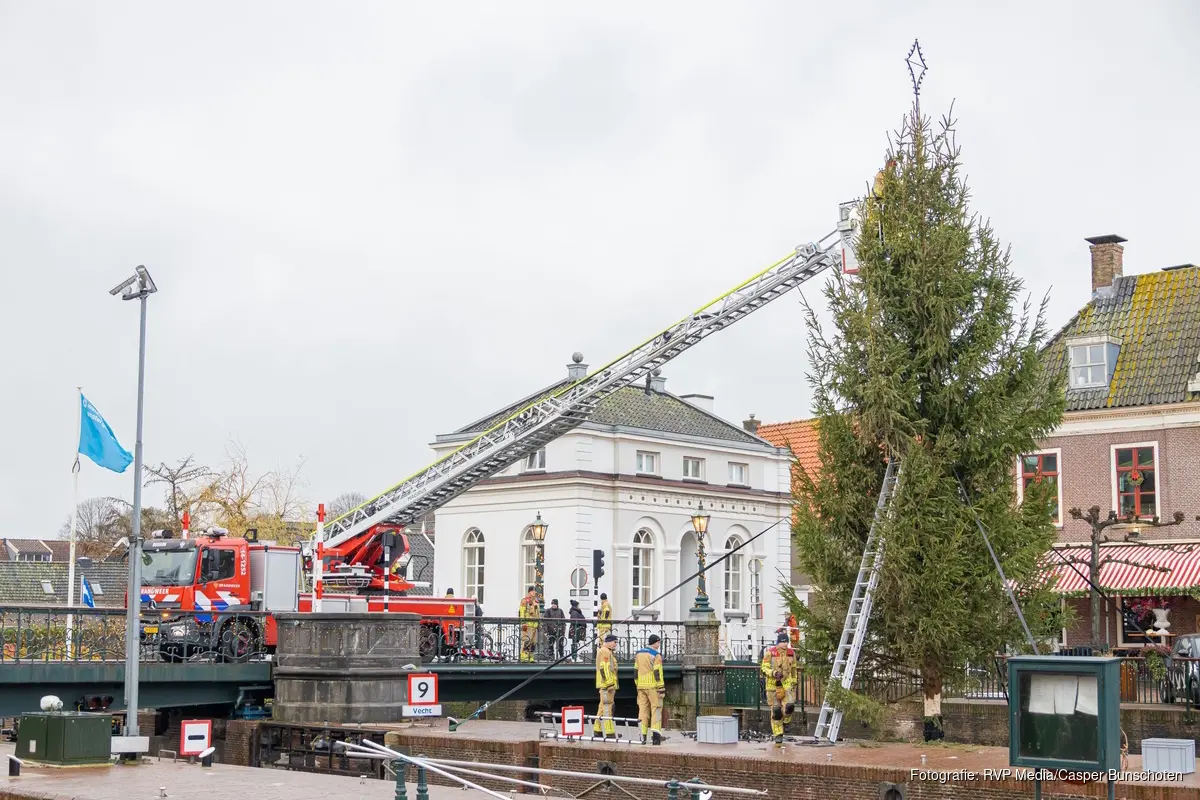De brandweer was aanwezig zoals ieder jaar om te helpen bij het neerzetten van de boom. Zodra de kerstboom stevig stond, heeft de brandweer met de ladderwagen alle lampjes in de boom opgehangen. Doordat de kraanwagen en de brandweerauto op de sluis stond, was er tijdelijk geen doorgang voor gemotoriseerd verkeer. De boom met lichtjes is tot na oud en nieuw te bewonderen.