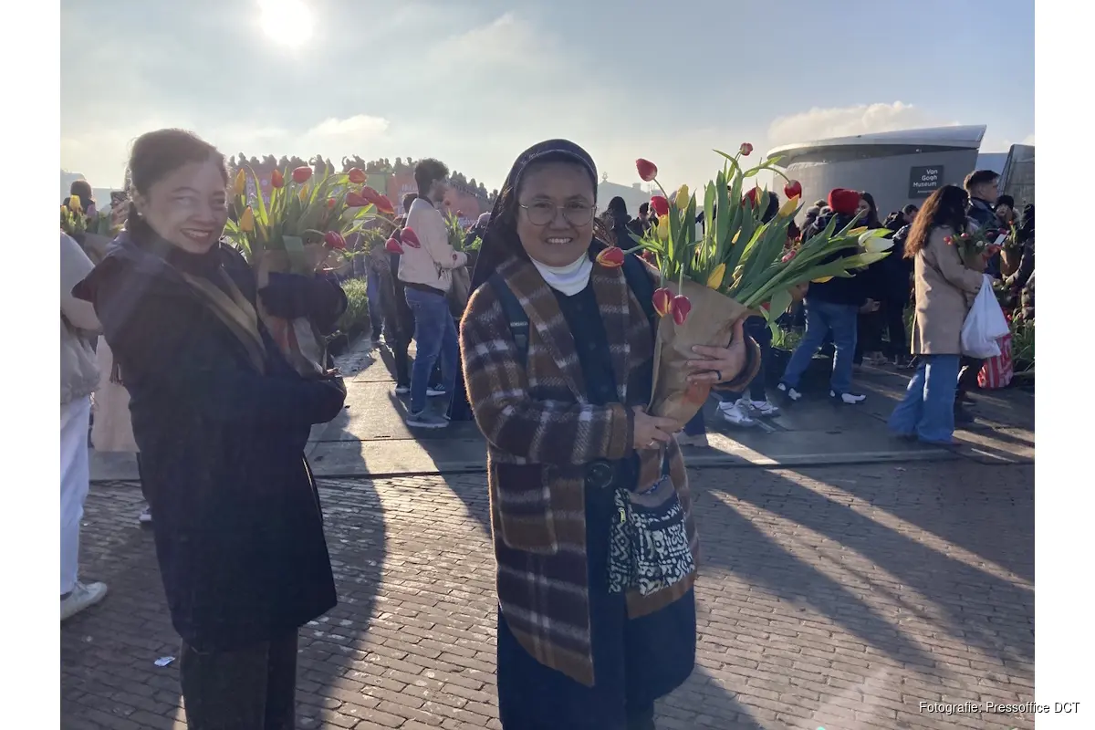 Waar ging de vraag over? Grote festijnen zouden verdeeld worden over de stad Amsterdam. Daarom werd het aanbod van tulpen zelf plukken van de Dam naar het Museumplein verplaatst...