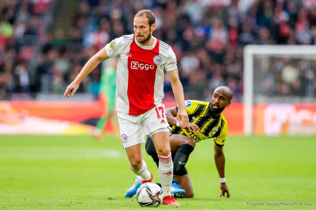Al na vijf minuten was het raak voor de ploeg van trainer Erik Ten Hag. Na een slim hakje van Mazraoui scoorde Antony de openingsgoal. Ajax zette de tegenstander ook daarna met prima spel onder druk, kreeg kans na kans en na een half uur kopte Álvarez de 2-0 tegen de touwen. Nadat Álvarez ook nog de lat had geraakt, zorgde Gravenberch nog voor rust voor 3-0.