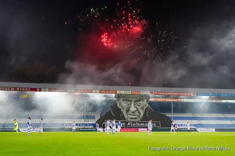 De voormalige trainer van o.a. De Graafschap overleed eerder deze week op 81-jarige leeftijd na een lang ziektebed. Hoewel er geen publiek aanwezig mocht zijn was de minuut stilte en het vuurwerk voorafgaand aan het duel indrukwekkend.
