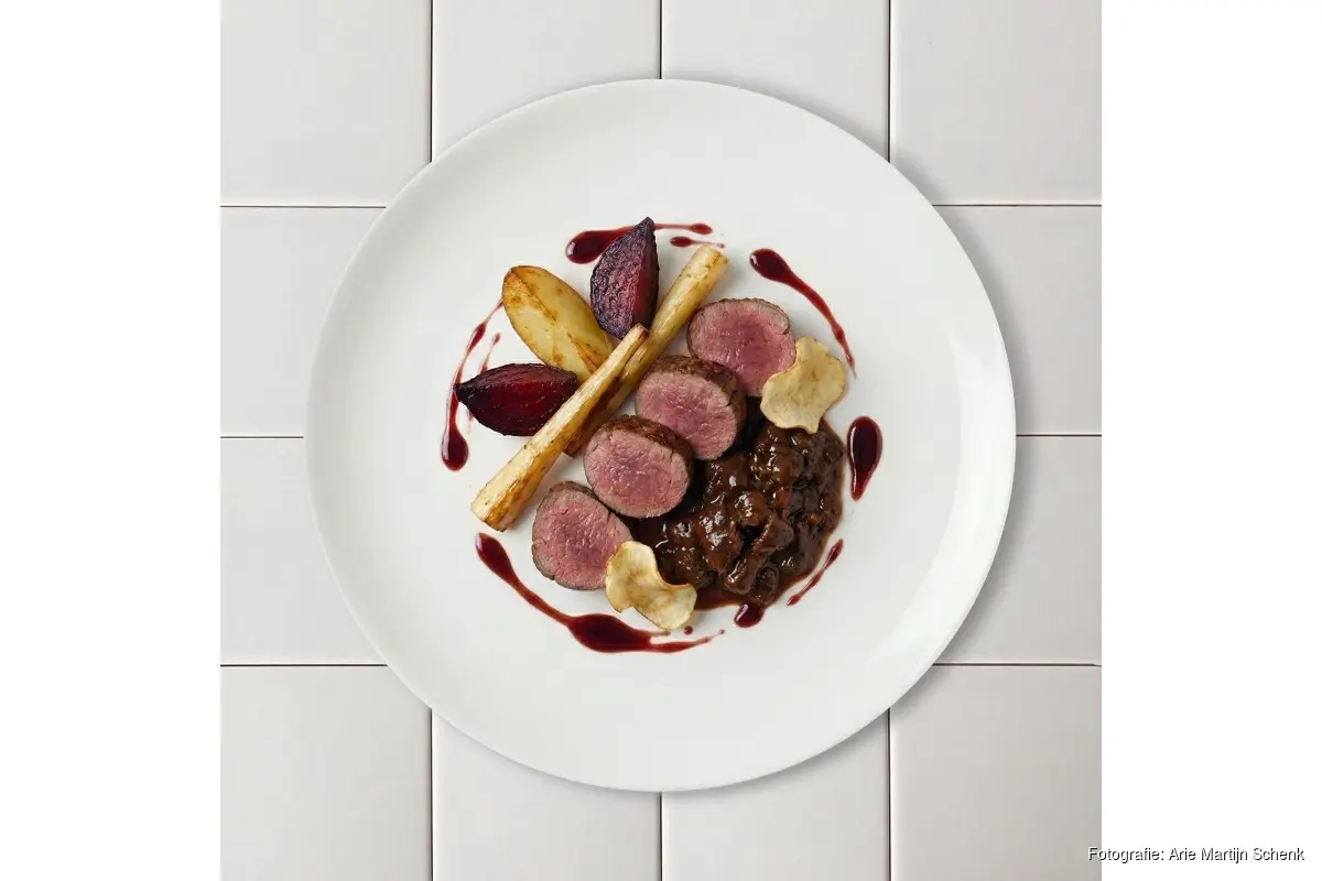 'We presenteren dit als Feestmenu', zegt Quintin. 'Het is een luxere, feestelijke variant naast ons seizoensmenu. December nodigt uit om uit te pakken.' Het menu bestaat uit o.a. gestoofde parelgort met eekhoorntjesbrood als voorgerecht en gebakken hazenrugfilet met hazenragout, allemaal in de stijl die Hemelse Modder al decennialang kenmerkt.